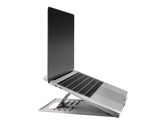 Grâce au rehausseur ergonomique et refroidissant Easy Riser Go avec SmartFit de Kensington , vous pouvez régler la hauteur de votre écran tout en profitant d'une meilleure circulation de l'air. Doté d'un design 2-en-1 élégant, il permet d'ajuster la hauteur et l'inclinaison afin d'améliorer la posture, la position du regard et le confort des épaules et du cou, tout en s'assurant que les composants internes de l'ordinateur portable ou de la tablette ne surchauffent pas. Ses patins antidérapants empêchent tout glissement, ses parties rembourrées maintiennent votre appareil en place et son design pliable facilite le transport. S'utilise avec un clavier et une souris externes (vendus séparément). Ce produit est compatible avec les ordinateurs portables et tablettes jusqu'à 14"