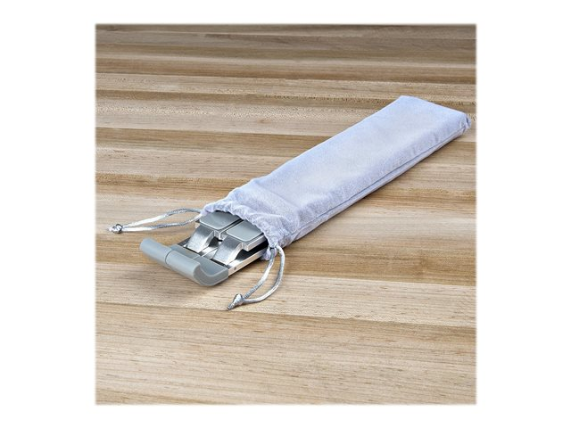 Ajustez l'angle de vue du panneau de base/clavier d'un ordinateur portable, en utilisant ce support élévateur pour ordinateur portable. Doté d'un cadre pliable à largeur réglable, ce support supporte les téléphones/tablettes plus petits ainsi que les moniteurs portables, et les ordinateurs portables avec des tailles d'écran allant jusqu'à 15,6". Le support est capable de supporter des appareils pesant jusqu'à 10 kg. Il est expédié entièrement assemblé, prêt à être déployé immédiatement.