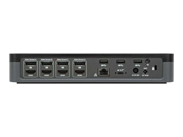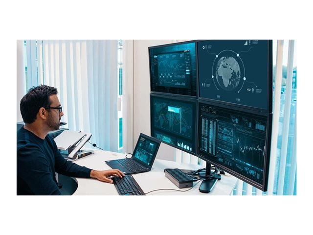 Augmentez votre productivité et vos performances grâce à la première station d'accueil universelle de qualité professionnelle au monde permettant de se connecter sur 4 écrans en 4K. Idéale pour les grandes entreprises, la station d'accueil Targus USB-C universelle 4 sorties vidéos 4K (QV4K) optimise l'affichage du poste de travail. La technologie DualDisplayLink DL-6910 prend en charge jusqu'à quatre écrans en DisplayPort (3 840 x 2 160 p60) ou HDMI (3 840 x 2 160 p50). La station d'accueil comprend de nombreux ports supplémentaires pour vous permettre de connecter vos périphériques USB 3.0 essentiels et votre réseau Ethernet.