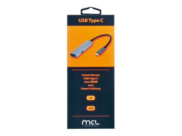 Ce convertisseur USB Type-C vers HDMI 4K vous permet de connecter un écran HDMI à votre ordinateur portable équipé d'un port USB Type-C. Ce convertisseur est doté de la technologie USB Power Delivery, qui permet d'alimenter votre ordinateur portable, en y connectant simplement son alimentation, lorsque le port USB Type-C est utilisé pour la diffusion des vidéos.