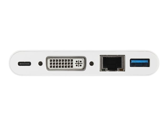 Power Delivery (USB PD) - USB C vers USB 3.0 / DVI / GbE - Hub USB Type-C - Adaptateur vidéo externe - USB-C - DVI, RJ-45 - blanc