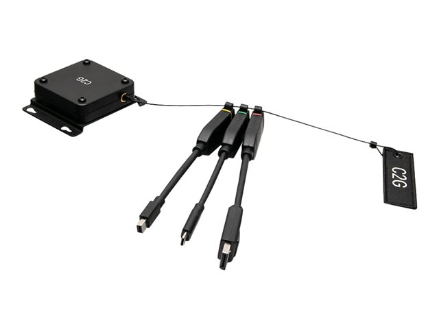 La boucle d'adaptateurs dongle 4K HDMI universelle rétractable est le complément parfait des salles de conférence, huddle spaces (bulles de travail), amphithéâtres ou salles de classe pour avoir la certitude que tout le monde peut se connecter. La configuration standard comprend des adaptateurs permettant de connecter pratiquement tous les appareils à l'écran de la salle, tout en prenant en charge une résolution vidéo jusqu'à 4K. Cette boucle d'adaptateurs comprend des adaptateurs HDMI vers DisplayPort, Mini DisplayPort ou port USB-C permettant de faire face à divers défis de connectivité.