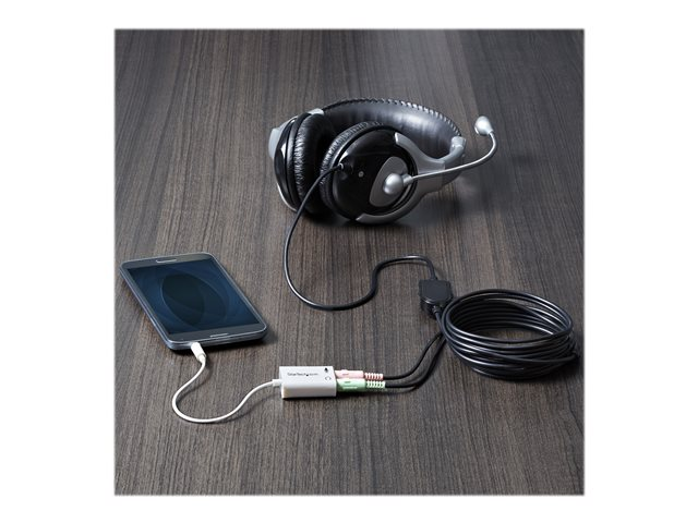 Rangez l'adaptateur avec votre tablette ou glissez-le dans un autre étui de transport. Il est parfait pour les tablettes et les smartphones équipés d'un seul port audio. Il vous suffit de connecter les fiches du casque et du microphone de votre casque d'écoute à l'adaptateur, de connecter l'adaptateur à votre appareil mobile et de commencer à parler.