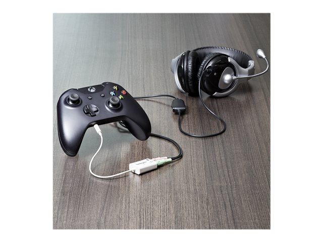 L'adaptateur blanc pour casque d'écoute MUYHSMFFADW comporte deux ports de 3,5 mm à 3 positions, qui offrent une connexion séparée pour casque et microphone pouvant être connectée au port audio unique de votre ordinateur portable. Les utilisateurs qui préfèrent utiliser Skype ou parler en ligne sans casque d'écoute peuvent également connecter un microphone séparé et des haut-parleurs alimentés.