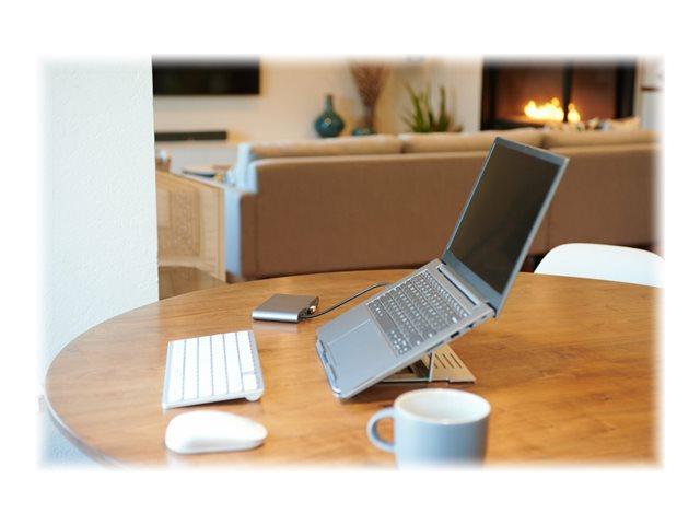 Facilement transportable et fabriqué en aluminium durable et léger, le rehausseur Easy Riser Aluminium accepte les ordinateurs portables jusqu'à 16'' et offre 6 niveaux de réglage de la hauteur et de l'angle pour une visualisation optimale. La conception ouverte du rehausseur améliore la circulation de l'air et le refroidissement de l'appareil.