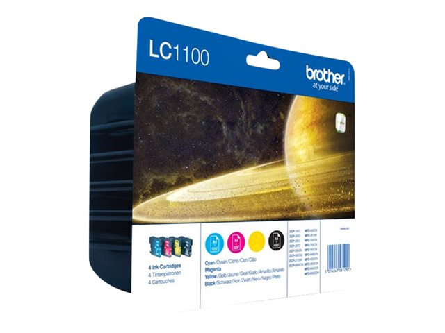Description du produit Brother LC1100 Value Pack - pack de 4 - noir, jaune, cyan, magenta - original - cartouche d'encre Type de Produit Cartouche d'encre Technologie d'impression Jet d'encre Couleur d'impression Noir, jaune, cyan, magenta Caractéristiques des cartouches Brother Innobella Rendement Jusqu'à 450 pages (noir)