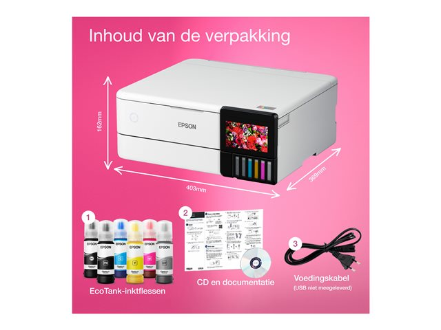 Laissez libre cours à votre créativité avec de superbes photos et documents au format A4 à un coût d'impression par page incroyablement bas. Imprimez, copiez et numérisez facilement grâce à l'impressionnant écran tactile couleur de 10,9 cm, à la gestion des supports à 5 chemins et au système d'encre 6 couleurs innovant. Sans cartouche à remplacer et avec ses fonctions de connectivité flexibles, c'est l'imprimante parfaite pour la famille artistique moderne.