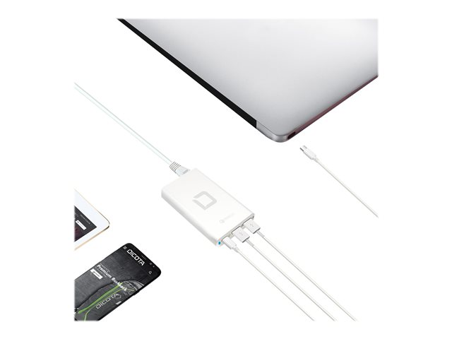 Profitez de la mobilité pure avec l'Universal Notebook Charger USB-C de DICOTA et bénéficiez à tout moment d'une alimentation correcte en énergie. Les 4 ports USB de type A et le port USB de type C avec Power Delivery 2.0 vous permettent de charger simultanément jusqu'à 5 appareils mobiles à l'aide d'un seul câble: ordinateurs portables, tablettes, smartphones ou autres accessoires.