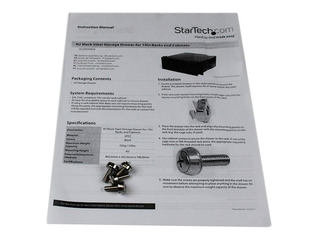 StarTech.com Tiroir de stockage en acier noir 4U pour racks et armoires 48 cm