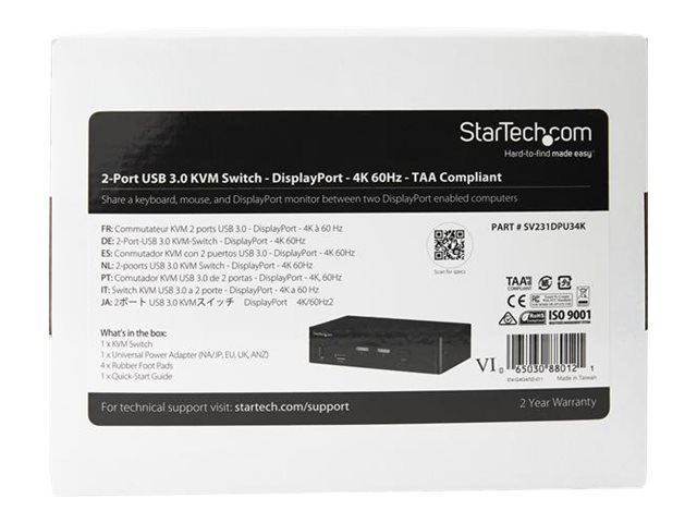 Commutateur KVM DP 1.2 avec hub USB 3.0 (SV231DPU34K) - Commutateur écran-clavier-souris/audio/USB - 2 x KVM / audio / USB - de bureau - Conformité TAA