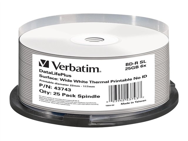 25 x BD-R - 25 Go 6x - surface imprimable thermique large - spindle