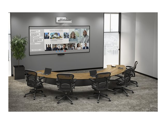 Le modèle EB-810E prend en charge plusieurs formats et l'edge blending avec plusieurs projecteurs pour un affichage ultra-large, continu et écoénergétique idéal pour la visioconférence.