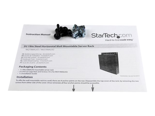 StarTech.com Rack de serveur en acier a fixation murale - 2U - Rack - montable sur mur - noir - 2U - 19" RK219WALVO